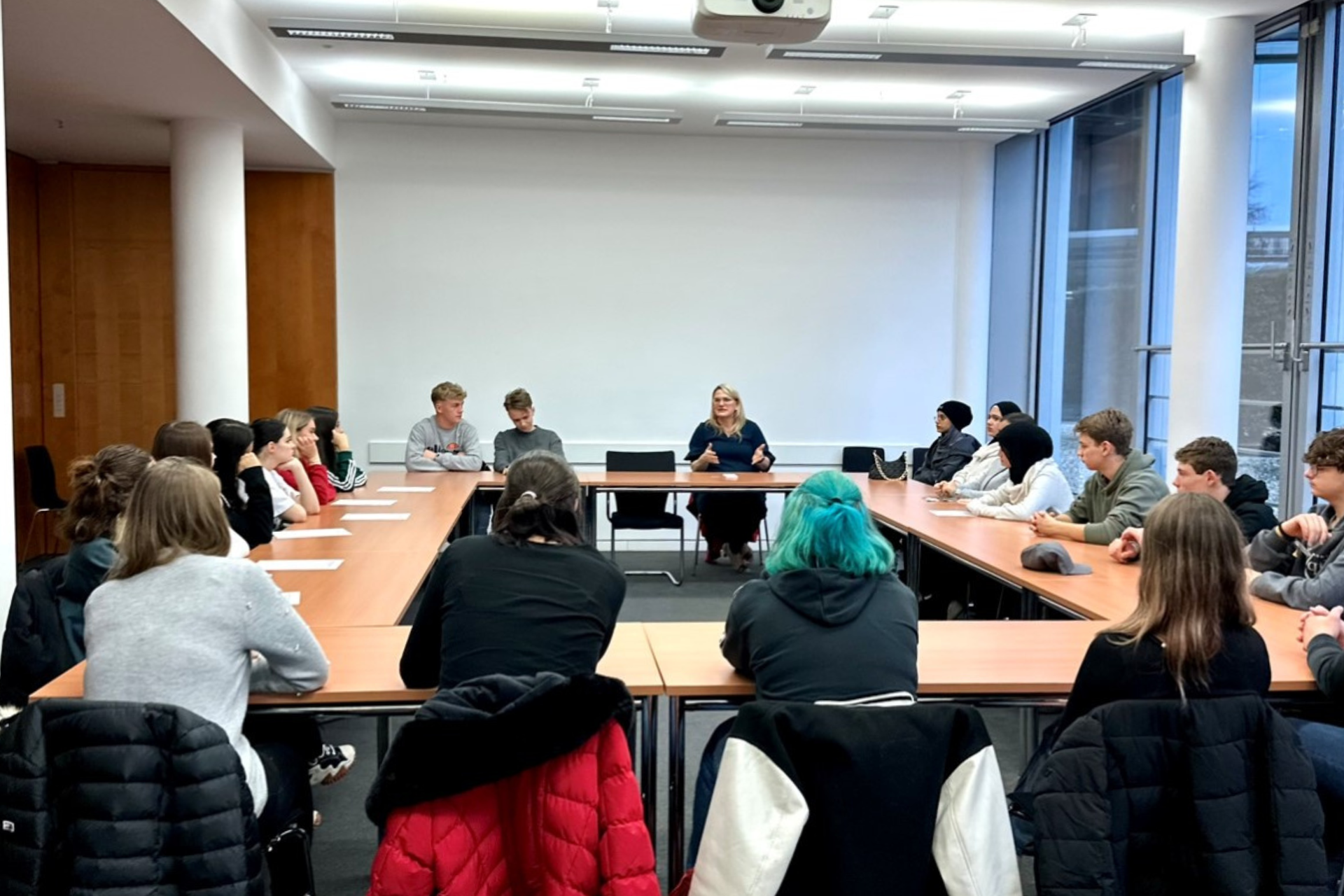Die Teilnehmerinnen und Teilnehmer erhielten dabei spannende Einblicke hinter die Kulissen unserer politischen Hauptstadt. So stand neben einer Führung durch den Reichstag und die angrenzenden Gebäude auch eine politische Diskussion auf dem Programm. Dabei kam eine große Bandbreite an Themen zur Sprache, wie etwa der Umgang mit dem Klimawandel, mögliche Auswege aus der Migrationskrise oder die Kritik der Union an der Haushaltspolitik der Ampel. Ich bin sehr beeindruckt, wie aufmerksam und kritisch hier diskutiert wurde und wie gut die Schülerinnen und Schüler informiert sind.