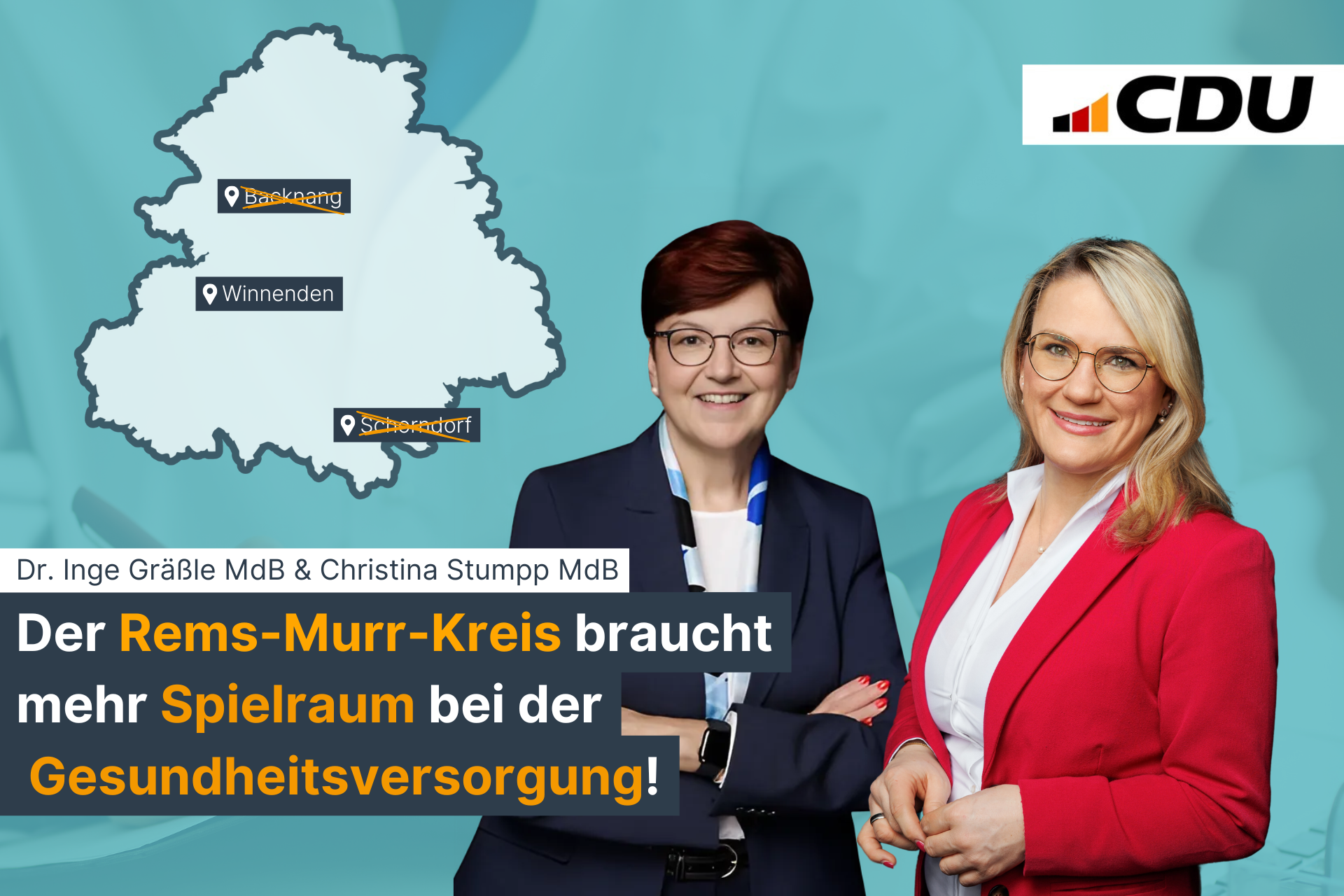 Gemeinsam mit meiner Kollegin Dr. Inge Gräßle habe ich mich deshalb an Bundesgesundheitsministerin Nina Warken gewandt. Unsere Botschaft ist klar: Der Bund muss jetzt die rechtlichen Hürden aus dem Weg räumen, damit der Rems-Murr-Kreis als Modellregion mit einem Pilotprojekt starten kann.